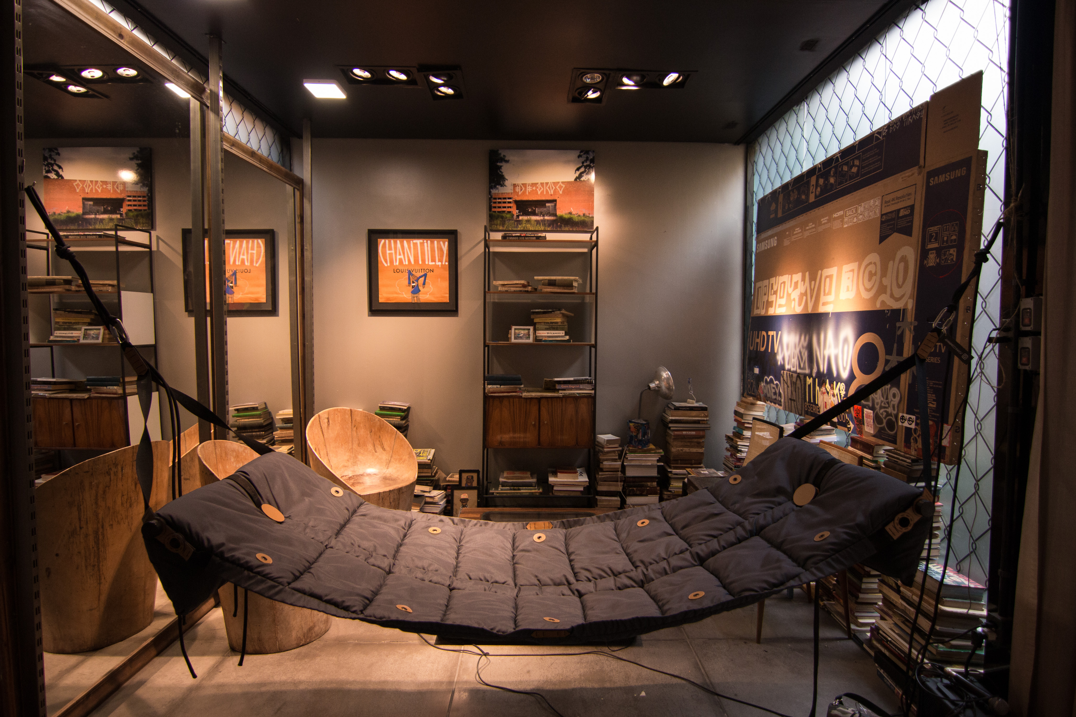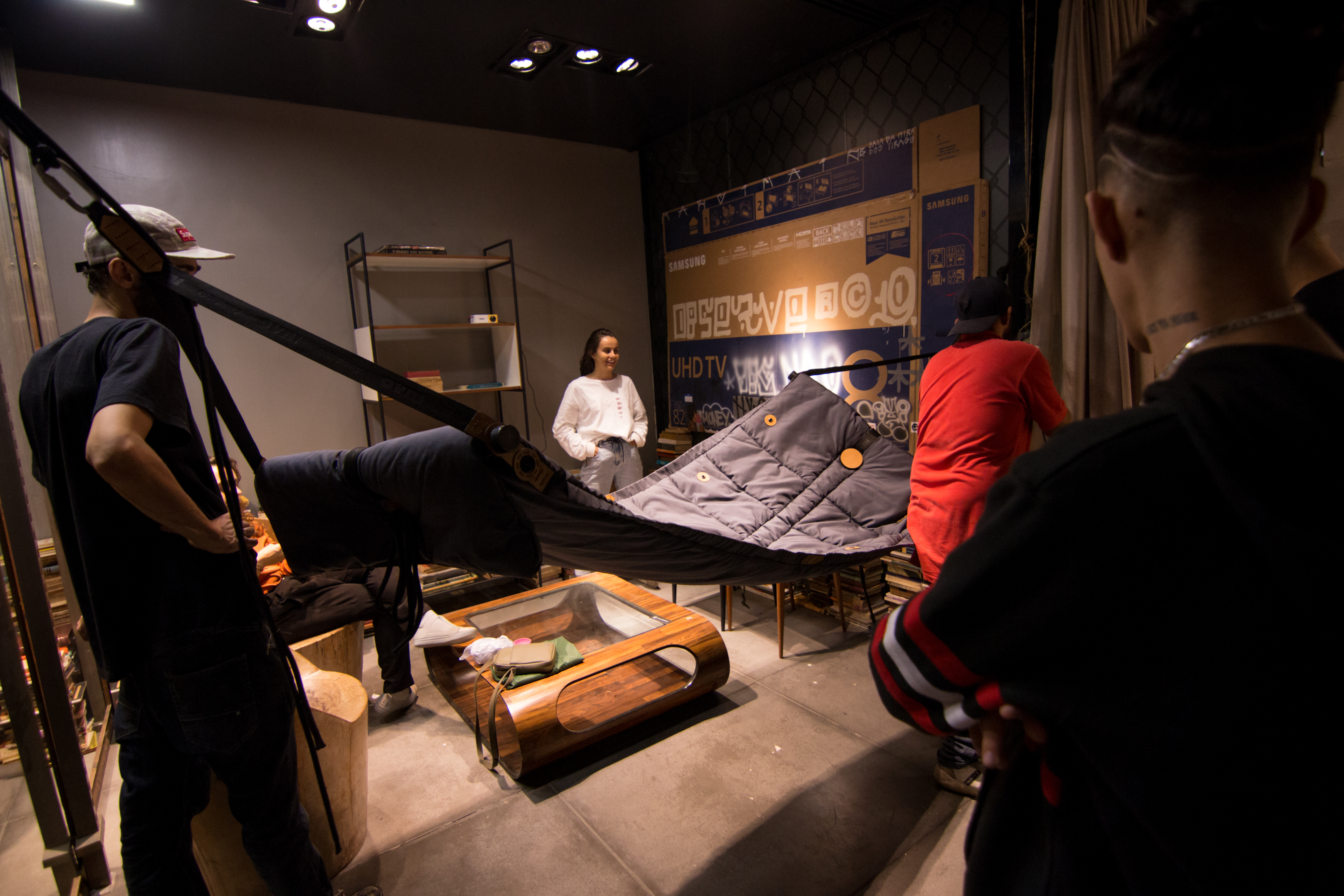 Intervenção urbana que compõe um ambiente sensorial ligado a construções improvisadas, desde a raiz do conceito maloca até os dias de hoje com habitações cada vez mais simples.