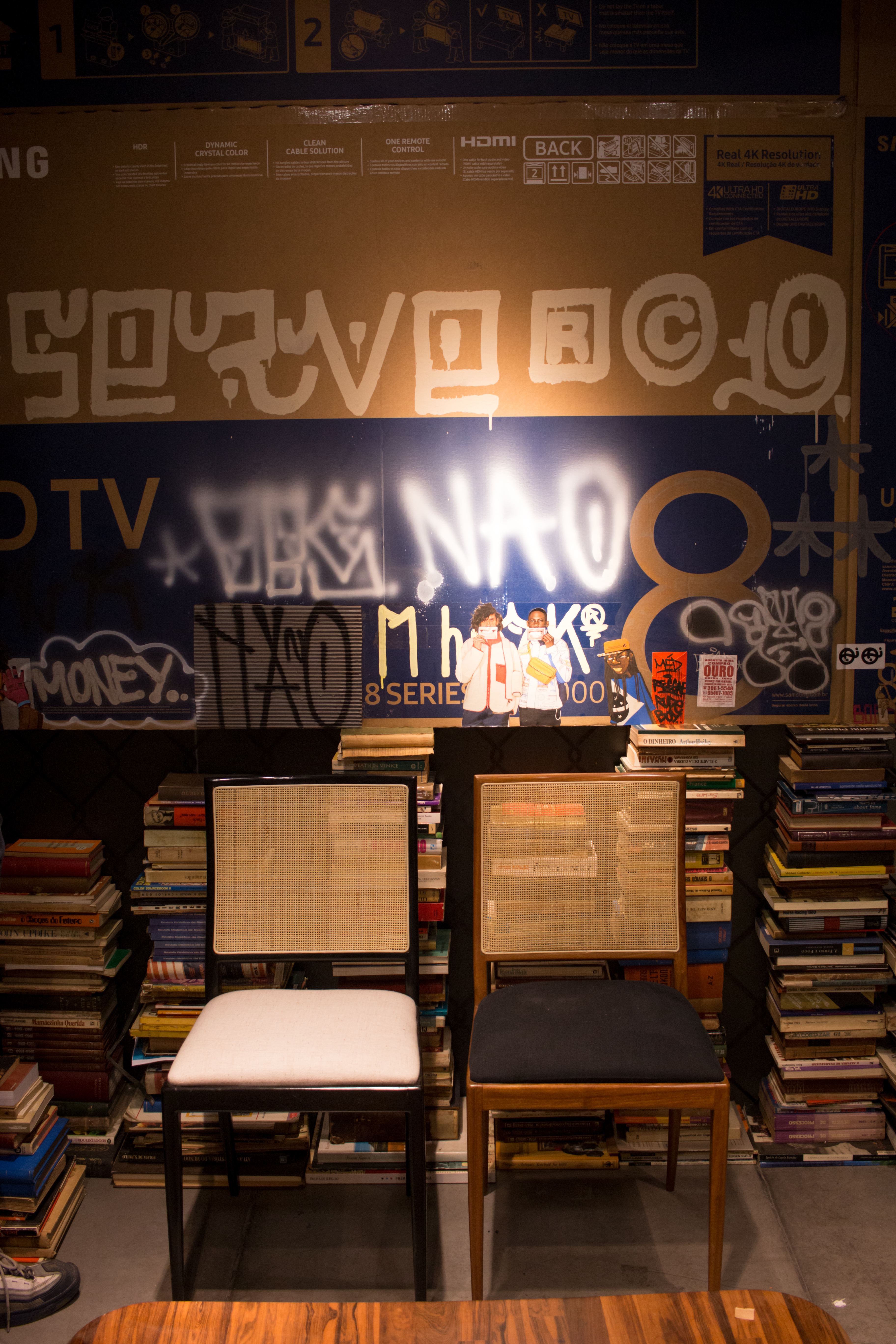 A partir de influências da pop art as obras estabelecem relações entre os barracos criados, fazendo analogias com marcas relevantes que interagem com o universo do artista.